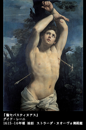 ボローニャ生まれの画家、グイド・レーニ(1575~1642)も何点もの聖セバスチャン像を残しているが、そのなかでも、ジェノヴァのストラーダ・ヌオーヴォ美術館が所蔵する『聖セバスティアヌス』(1615、16頃)は、彼の作品中最も世に知られたものとなった。のみならず、純粋な意味での美術を超えて、いつしか性風俗的な社会現象としてアイコン化もした。