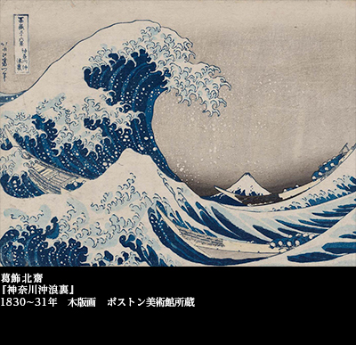 東西の垣根を越えたこの意外な組み合わせに関しては、私自身、ささやかな思い出がある。高校生の頃、ピエール・ブーレーズ指揮ニューヨーク・フィルによるドビュッシーの『海』のレコード・ジャケットに、この絵が使われているのを見て、とても新鮮な衝撃を覚えた。