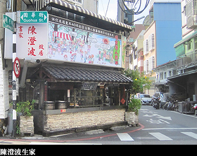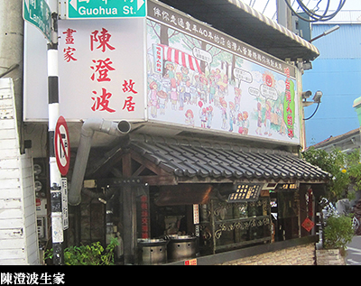 嘉義駅から徒歩で15分ほど、溢れる汗を拭いつつ、ようやく国華街と蘭井街のふたつの道の交わる角にたつ陳澄波の生家に着く。「画家 陳澄波故居」と書かれた看板が掲げられているので、迷うことはない。看板の横には、楽しげな漫画風の絵に添えて「咱台湾人的冰」と書かれている。「我ら台湾人の氷」ほどの意。なんと、この家は今では嘉義でも有名なかき氷屋になっているのだ。
