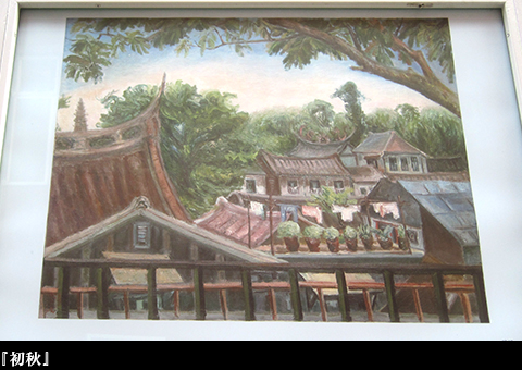 10点のパネルのなかに、嘉義のかき氷屋に飾られていた、屋根の重なる絵があった。『初秋』(1942)とある。この絵のタイトルを、私はここで初めて知った。