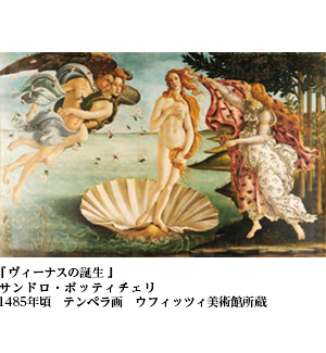 ボッティチェリは、愛の化身のヴィーナスを描くに、既に亡くなった人の幻影を追いつつ絵筆をとっていた……、この人の画業と人生を考える時、これは見逃してはならない創作上の核となろう。しかもボッティチェリは結婚もせず、女嫌いで知られていた。男色で訴えられたこともある。