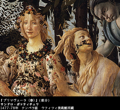 そう考えた時、かの『プリマヴェーラ』のフローラの姿が、理念上は春爛漫の象徴であるはずが、満面に湛えてしかるべき笑みや輝きよりも、少々くたびれたような、屈折した影を抱えたように見えることが、改めて思い出されてくる。