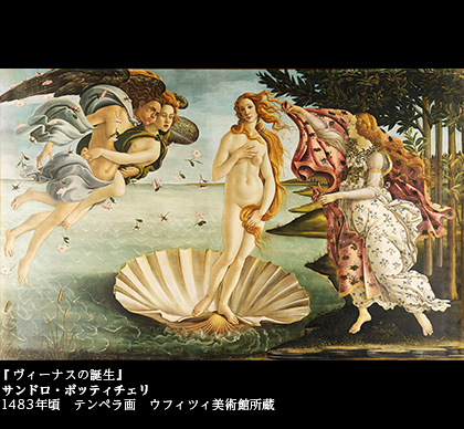 やはりシモネッタがモデルだったとされる『ヴィーナスの誕生』のヴィーナスが、中世的な禁欲の闇を超え、海の彼方から大きなホタテ貝に乗って、白い裸身を誇らしげに輝かせながら現れたのも、蘇生という点ではまさにパラレルな構図を描く。どちらも、「黄泉帰り」の儀典のような絵なのだ。