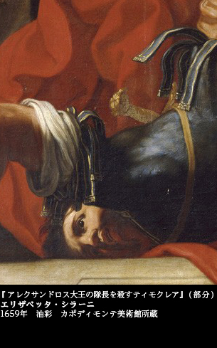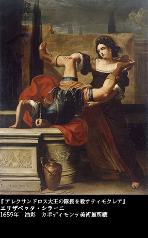 ユディトを主人公に女性の勝利を描いたエリザベッタ・シラーニ(1638~1665)には、もうひとつ、強烈な「男成敗」の絵がある。『アレクサンドロス大王の隊長を殺すティモクレア』(1659 カポディモンテ美術館)――。女性の復讐を描いた歴史画である。