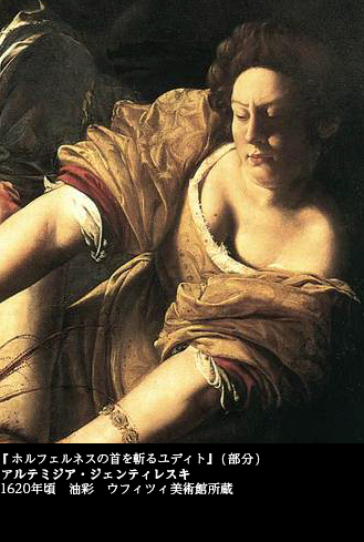 「男成敗」の絵画として、エリザベッタ・シラーニと並んで、つとに世に知られた女性画家の作品がある。アルテミジア・ジェンティレスキ(1593~1652)が描いた『ホルフェルネスの首を斬るユディト』(1620年頃 ウフィツィ美術館)――。