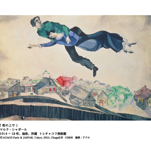 恥ずかしくも、私は高校生の頃に初めてこの人の絵に触れて以来、しばらくはフランスの画家だと思い込んでいた。「色彩の魔術師」とか「愛と幻想の画家」などという形容も、パリの華やぎこそがふさわしいと信じて疑わなかった。その人の生い立ちがロシアに根を持つことを知ったのは、長く外の世界に対して閉じられてきた初期のシャガール作品を、ペレストロイカを機に公開し始めたモスクワのトレチャコフ美術館から多くの作品が寄せられた、1989年のシャガール展(Bunkmuaザ・ミュージアム他)がきっかけだった。