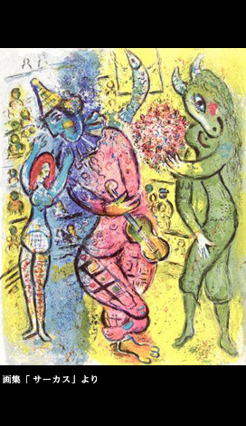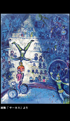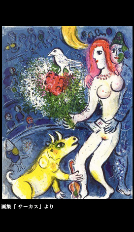 愉悦の祝祭こそが、最も哀しいのである。実を言うと、日本人は伝統的感性に於いて、この人生のドラマティックな移ろいの魔術を見抜いていた筈だ。無常という哲学がそれである。「面白うてやがて哀しき鵜飼かな」とは芭蕉の俳句だが、ここに込められた感慨は、シャガールがサーカスに感じていた思いと通底する。
