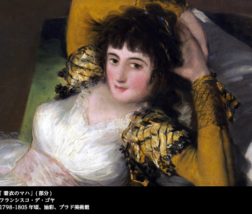 いや、誤解のなきように願いたいが、「着衣のマハ」はそれ自体が大変な傑作には違いないのである。はやりのトルコ風の衣装をまとった女性は、時代のモードに包まれ、嫣然と微笑む。「マハ」とは固有名詞ではなく、「小粋なマドリッド娘」といった一般名詞であるとのことだが、なるほど、流行のファッションをまとった典雅な女性が、くつろいだ姿勢の中に優美な薫りを漂わす。