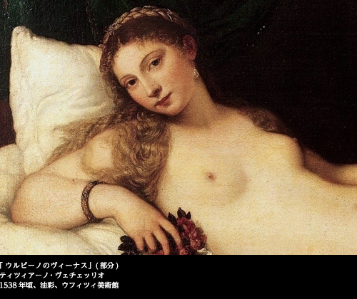 かくて私たちは、ティツィアーノの筆を通して、永遠なる官能美に接する恩恵に浴する。その意味では、この絵もまたしばしの「御開帳」なのだ。艶めき、なまめかしく、神々しいほどに美しい肢体を覆わせるものに対し、ティツィアーノの愛の美神は、静かに、しかし確信に満ちた抵抗を続けている。